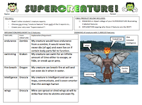 Students invent their own "Supercreature" based off of 5 classmates' creature reports: